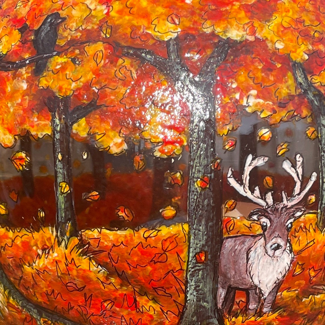 Artist Kelly Morgan has brought this distinctive glass bowl candleholder to life with her autumnal wood design, capturing autumns vivid, warm and attractive natural colours. The stunning shades of autumn, striking shadows of the trees and the wide variety of woodland creatures waiting to be discovered makes this candle holder truly one of a kind.