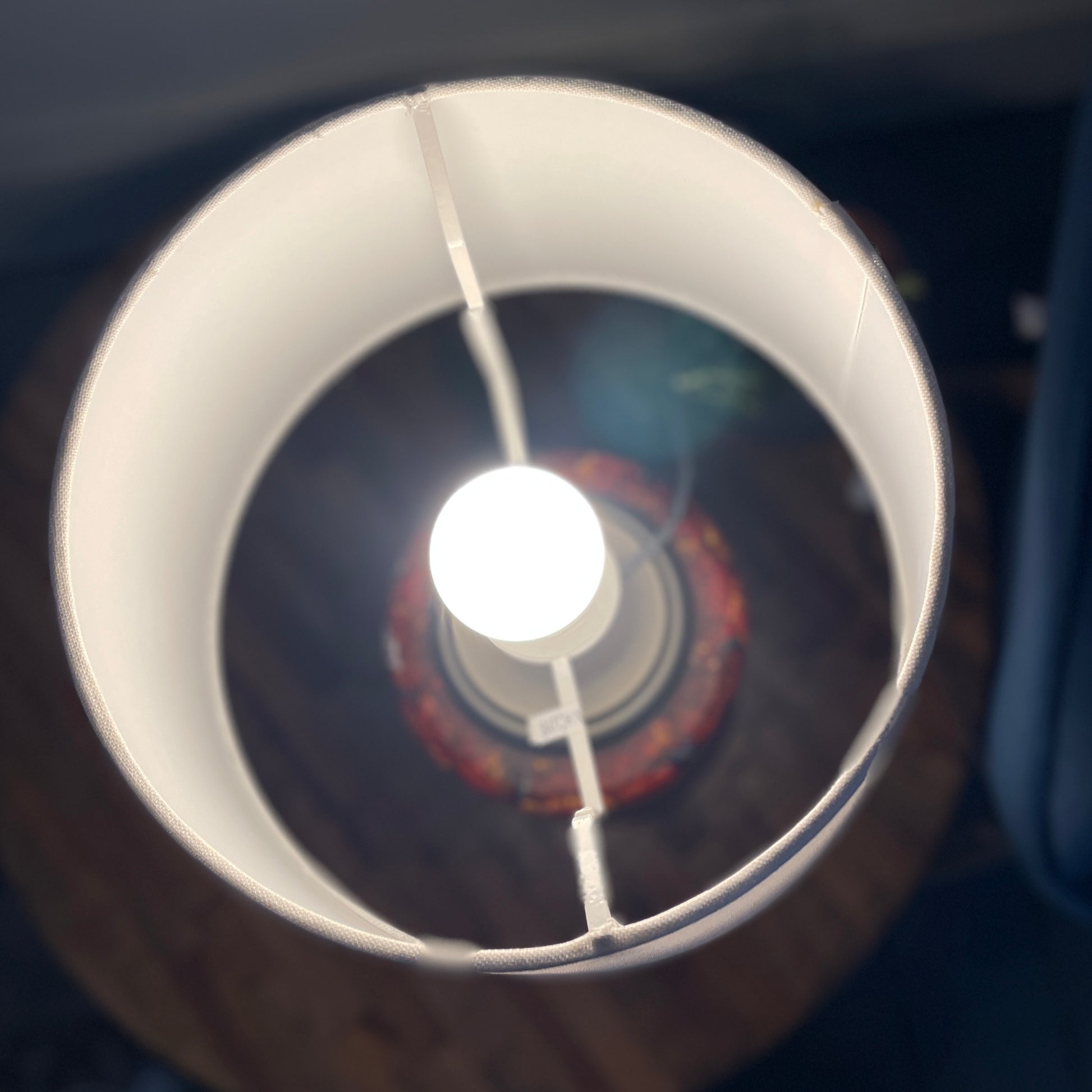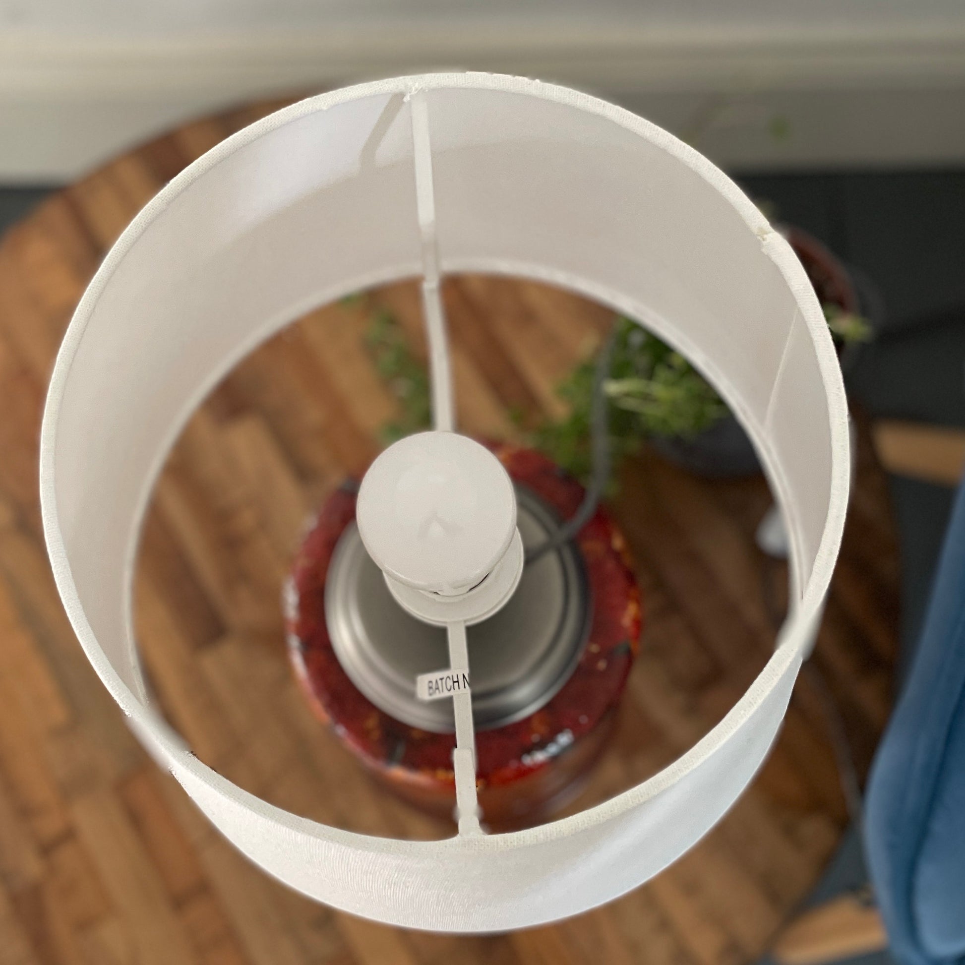 Height: 56.5cm / Base diameter: 19cm / Shade diameter: 30cm (approx). Supplied with a bulb.