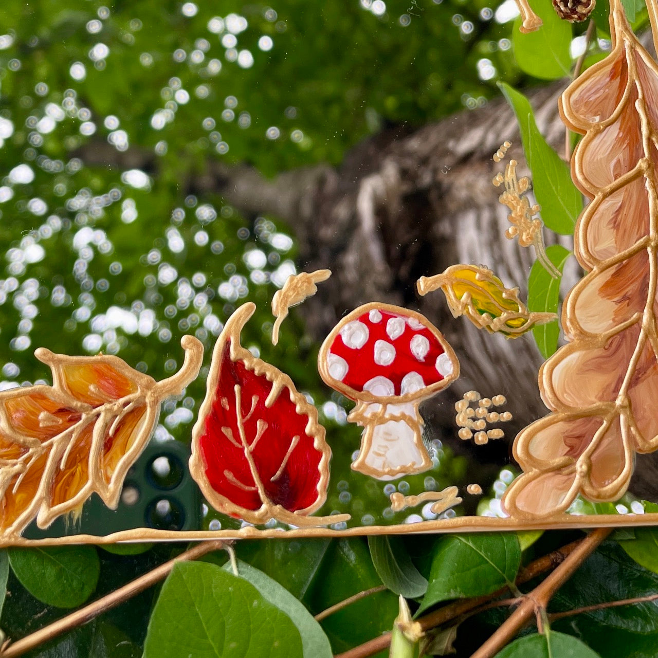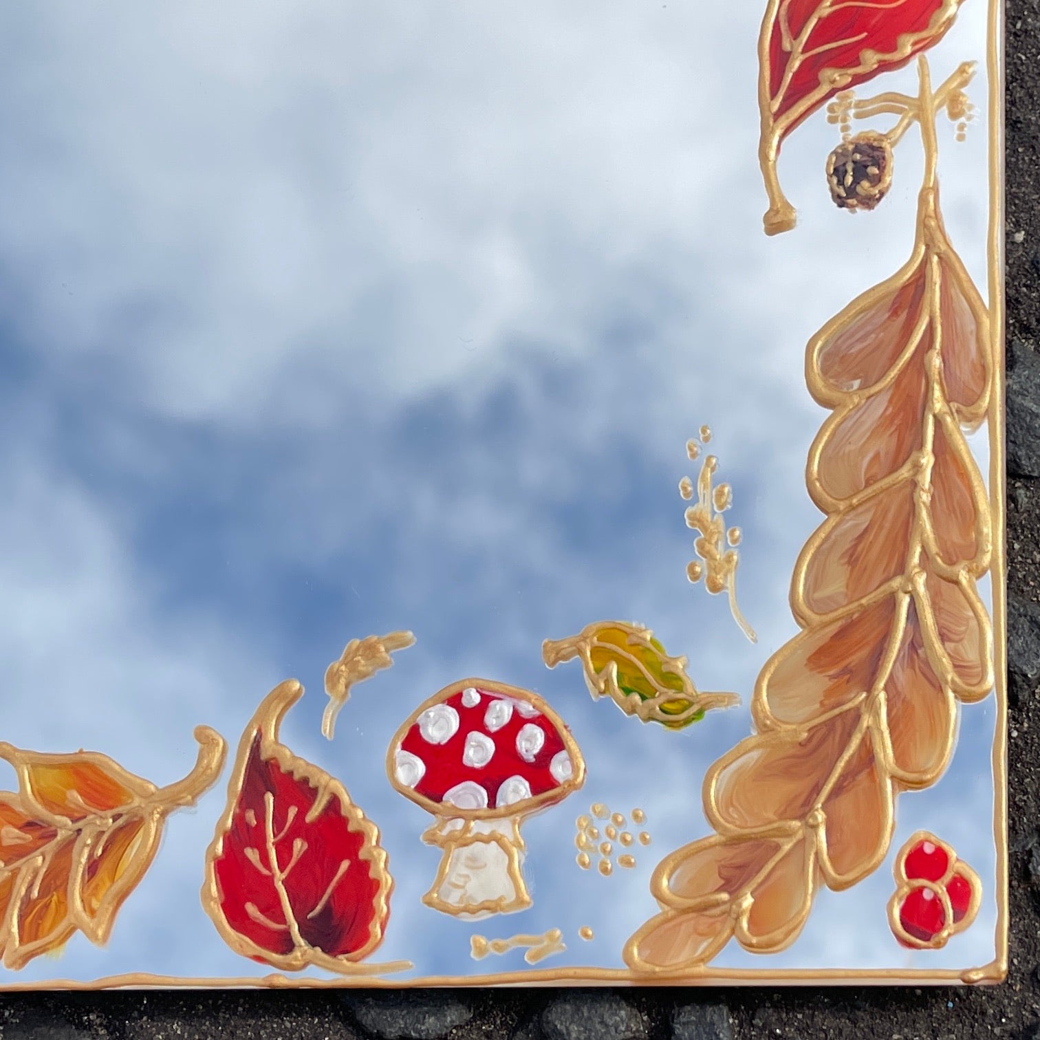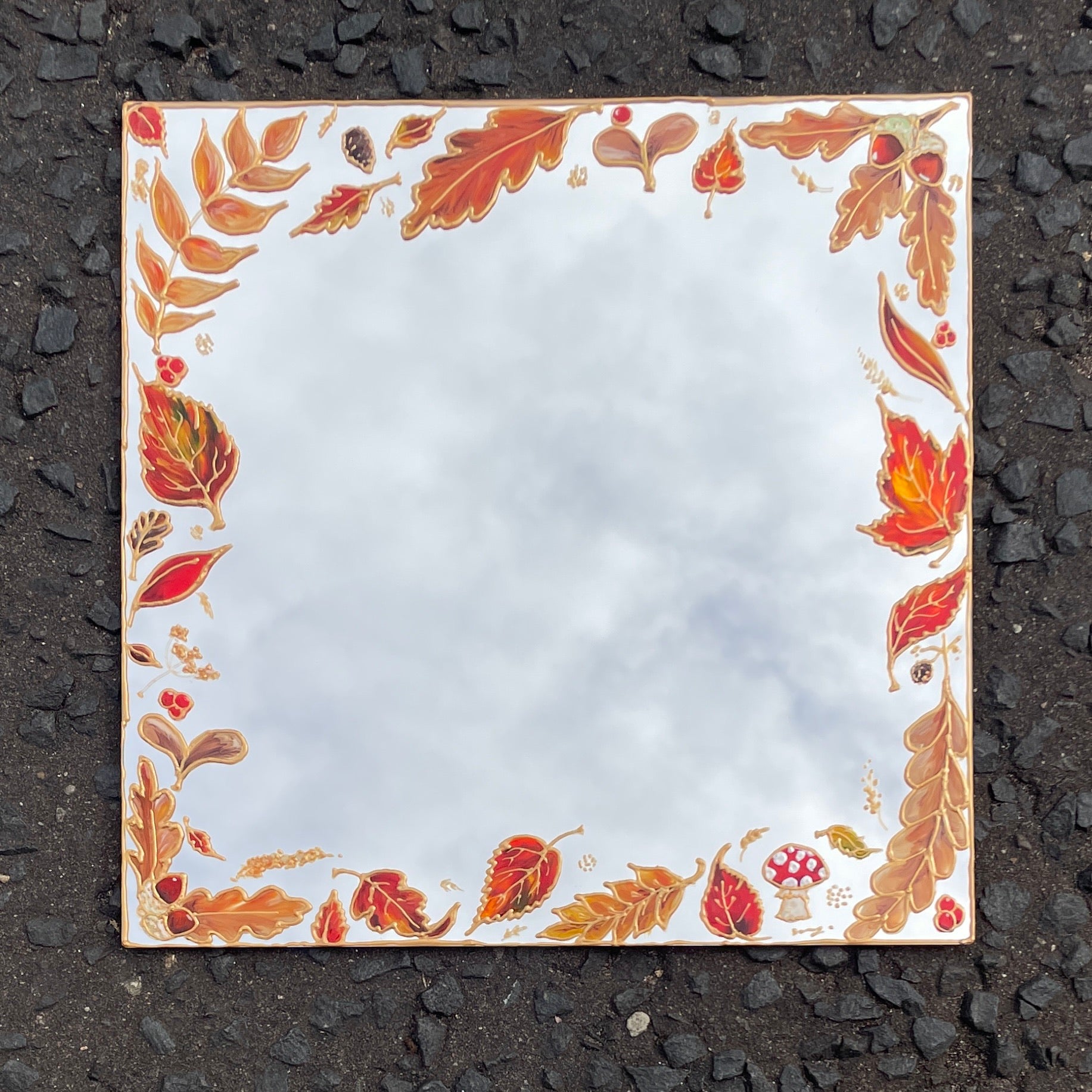 Artist Kelly Morgan individually hand paints her beautiful Autumnal design onto these square mirrors, to frame your reflection beautifully! This design features an abundance of autumnal warmth, red berries, toadstool, acorns amongst the gorgeous autumn leaves in their splendid colours.