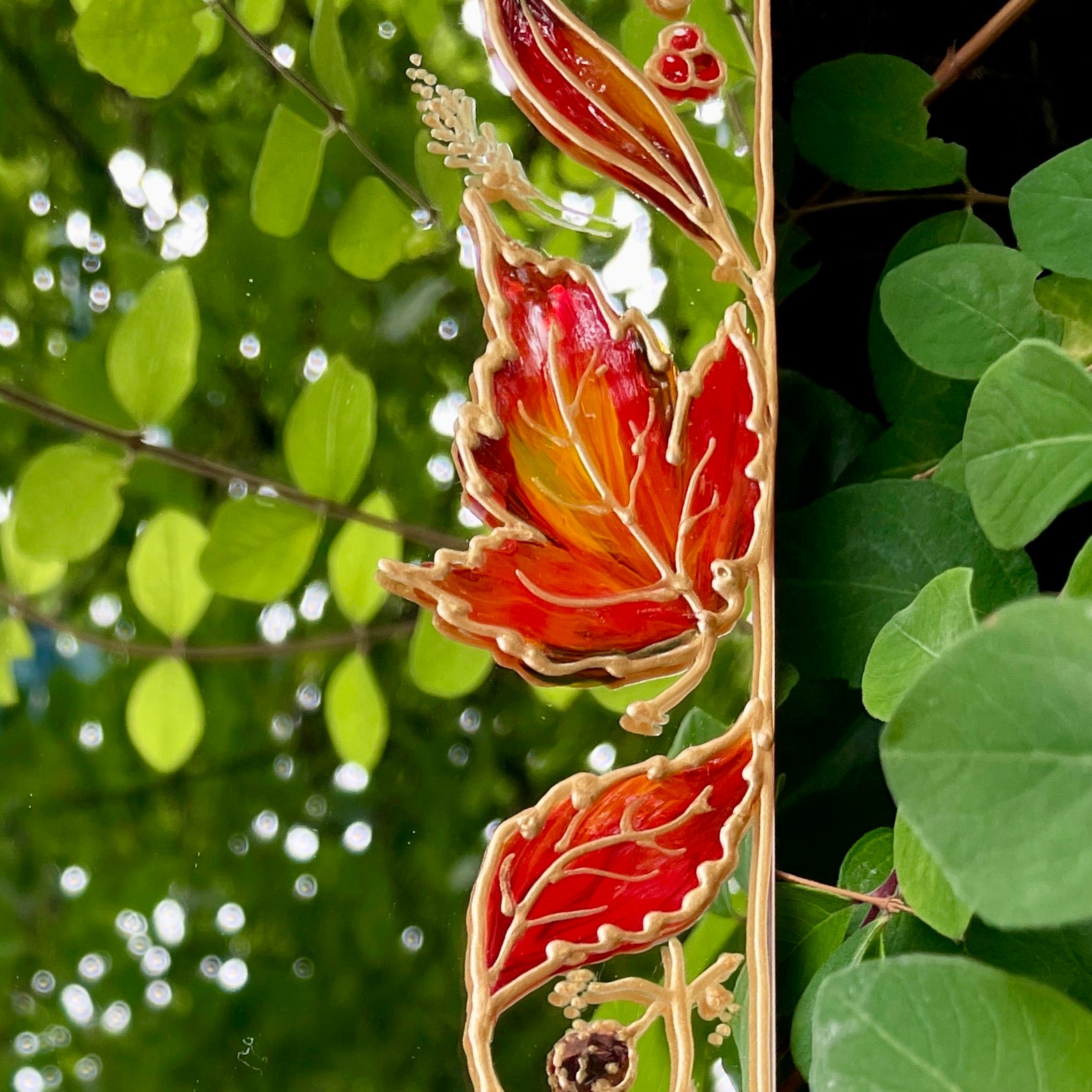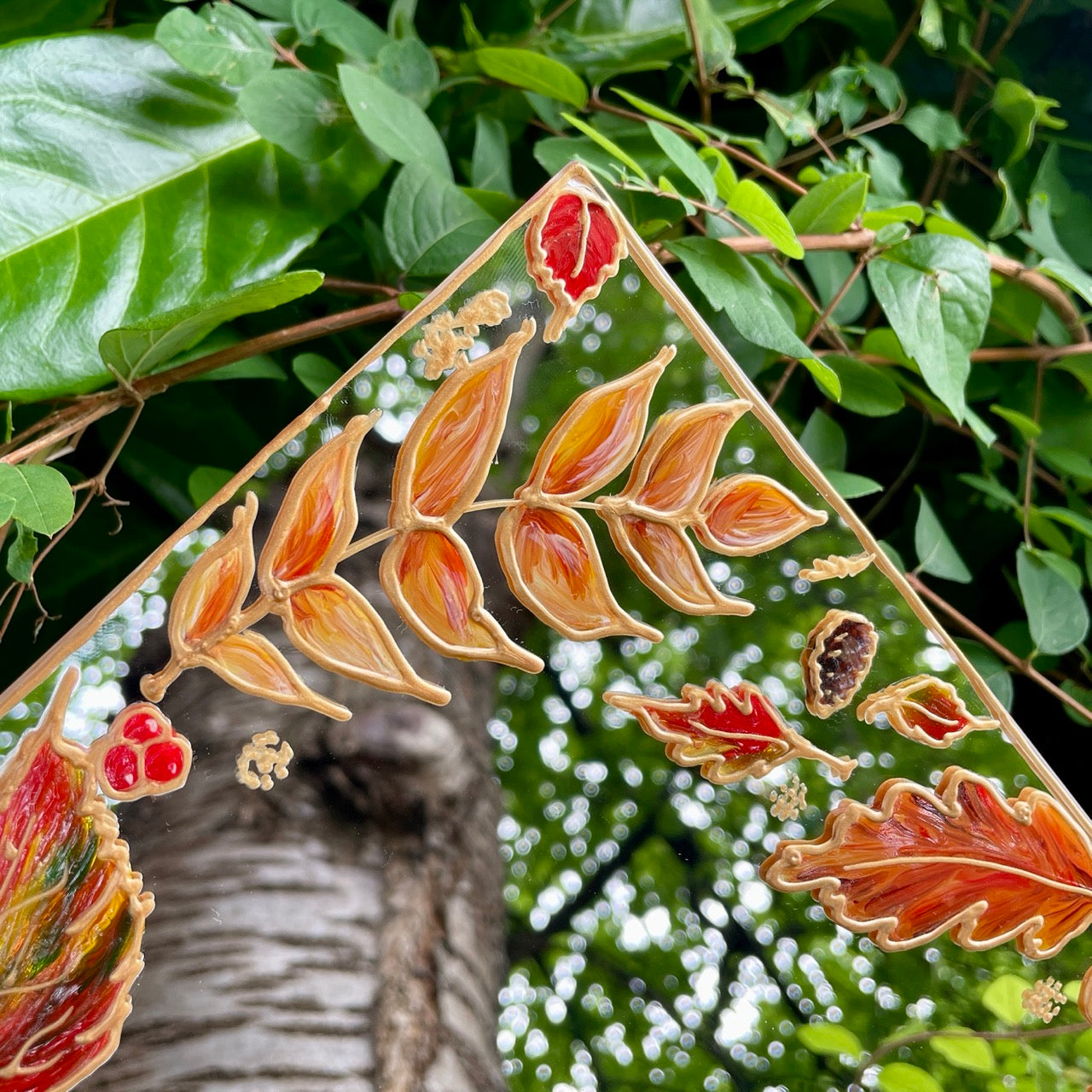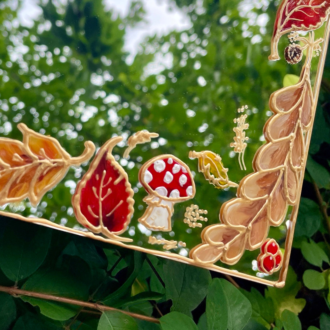 Artist Kelly Morgan individually hand paints her beautiful Autumnal design onto these square mirrors, to frame your reflection beautifully! This design features an abundance of autumnal warmth, red berries, toadstool, acorns amongst the gorgeous autumn leaves in their splendid colours.
