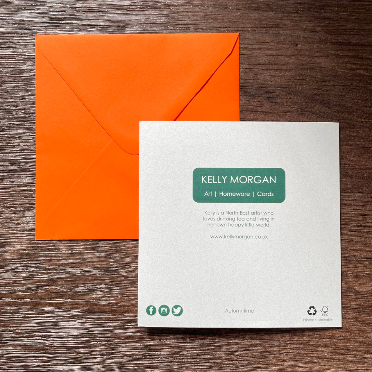 The design on this card 'Autumntime' is taken from Kelly Morgan's original artwork, and it's blank inside for your own message.