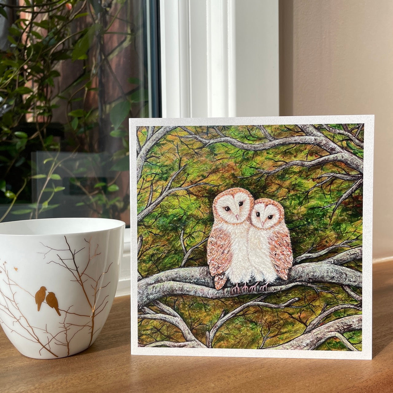 Kelly was inspired to paint Barn to Love You when she discovered that barn owls mate for life.