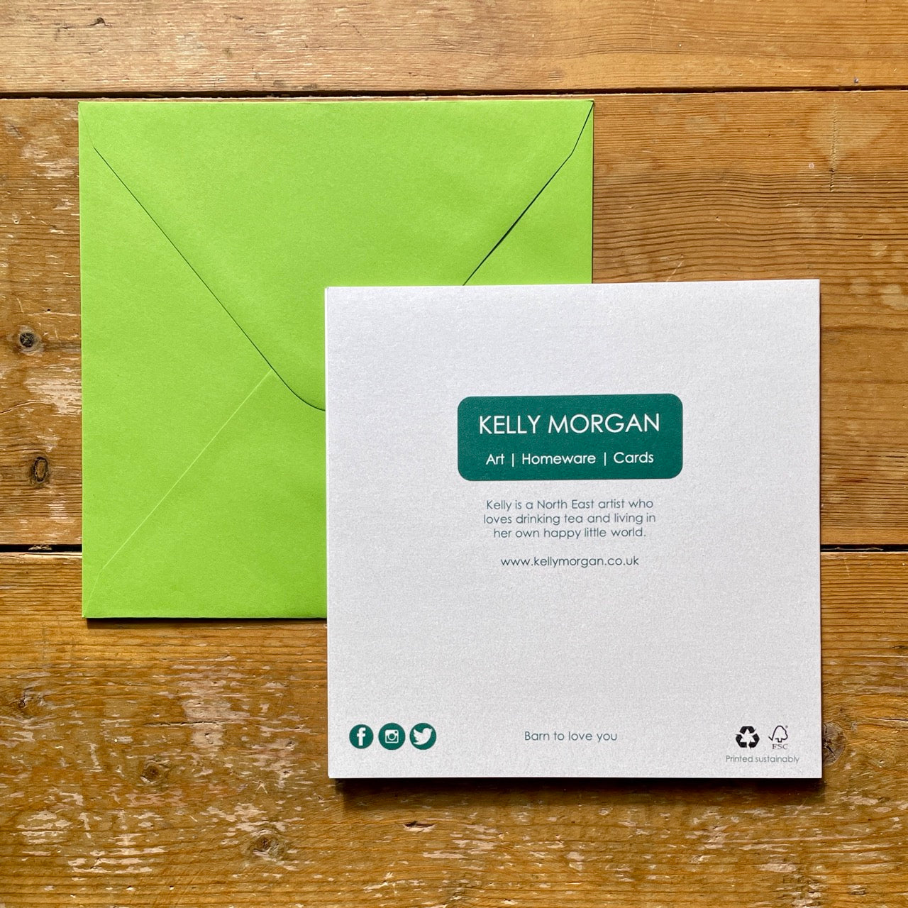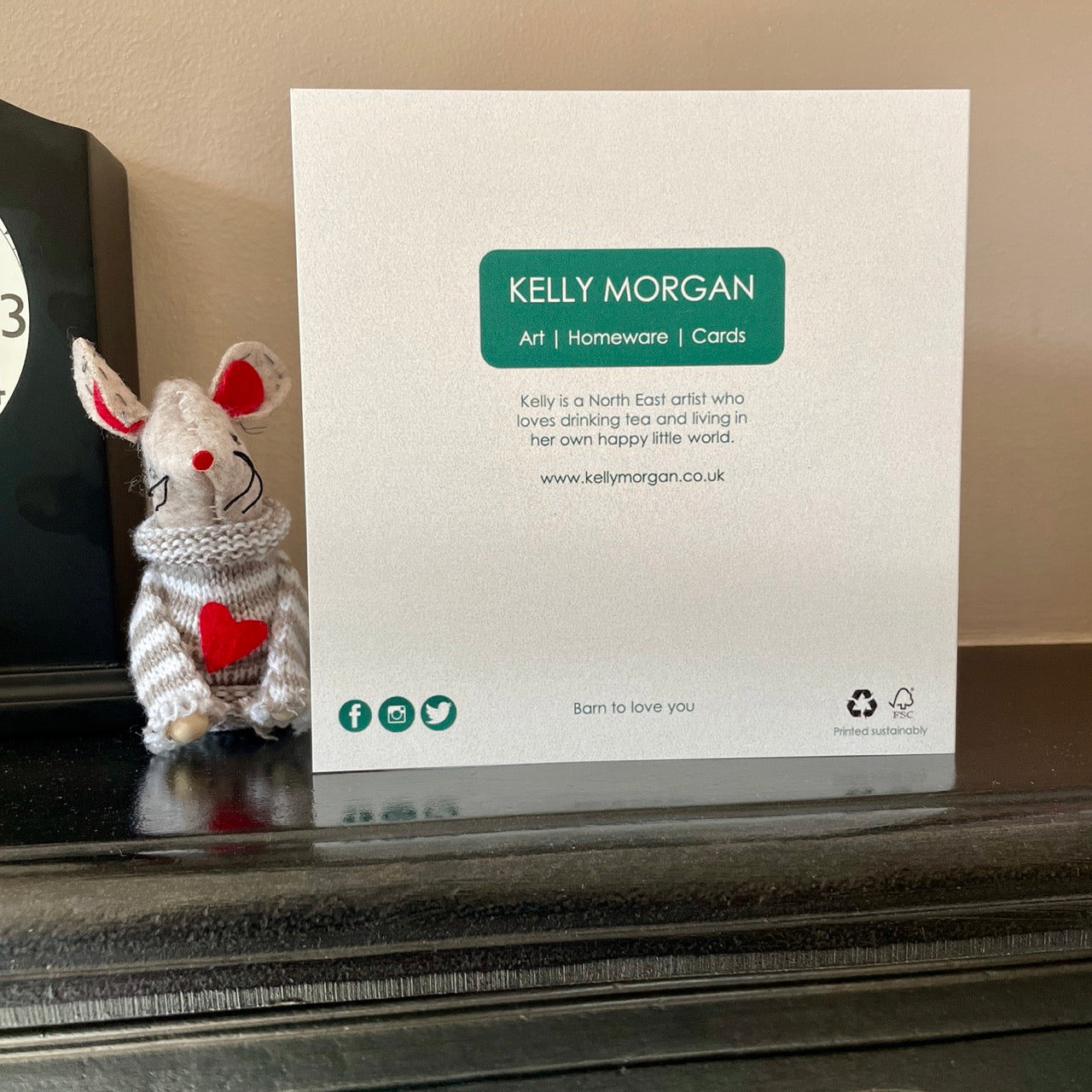 The design on this card 'Barn to love you' is taken from Kelly Morgan's original artwork, and it's blank inside for your own message.