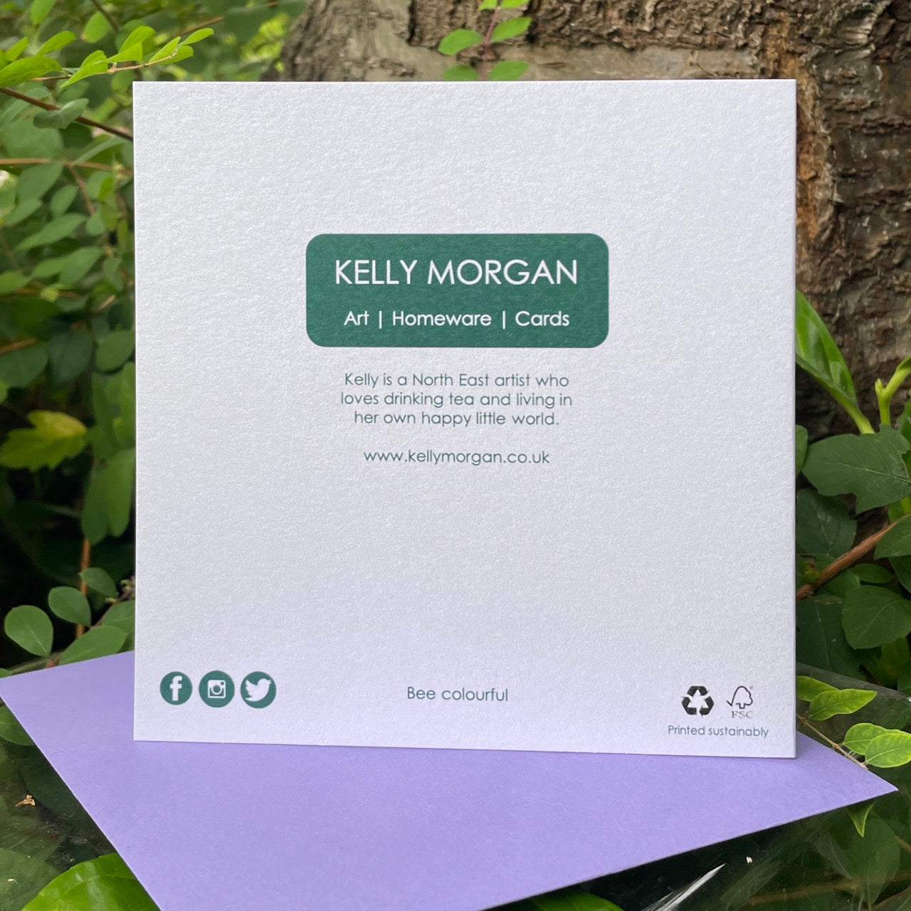 The design on this card 'Bee colourful' is taken from artist Kelly Morgan's original artwork, and it's blank inside for your own message.