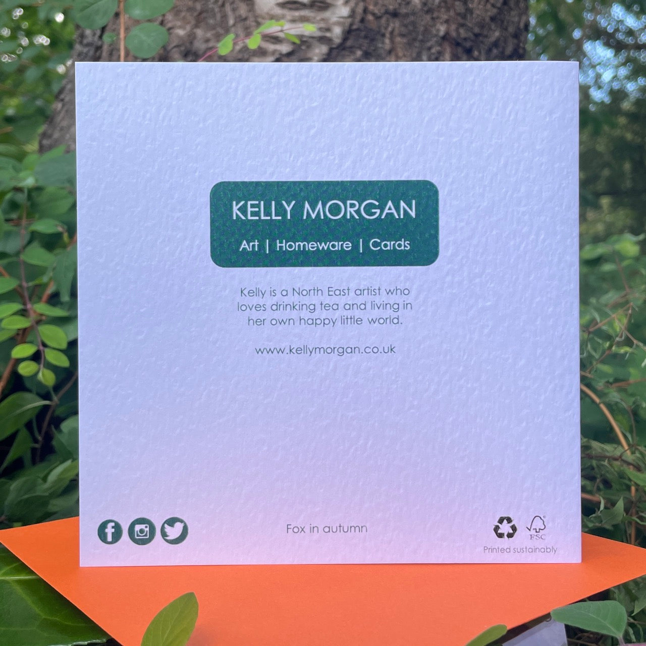 The design on this card 'Fox in autumn' is taken from Kelly Morgan's original artwork, and it's blank inside for your own message.