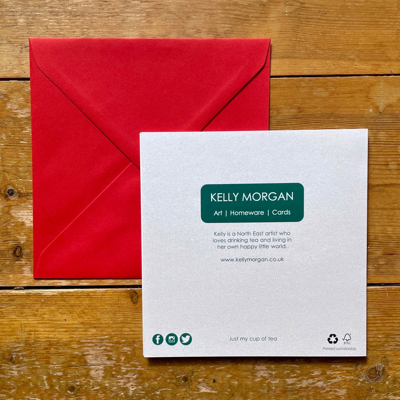 The design on this card 'Just my cup of tea' is taken from Kelly Morgan's original artwork, and it's blank inside for your own message.