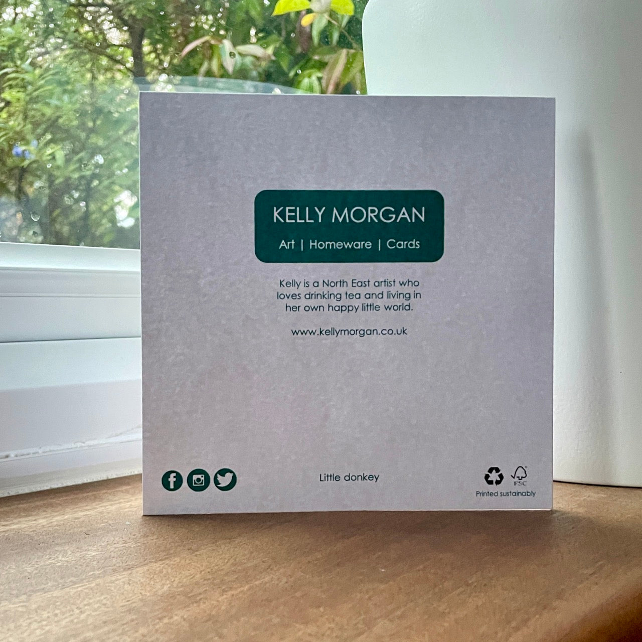 The design on this card 'Little donkey' is taken from Kelly Morgan's original artwork, and it's blank inside for your own message.