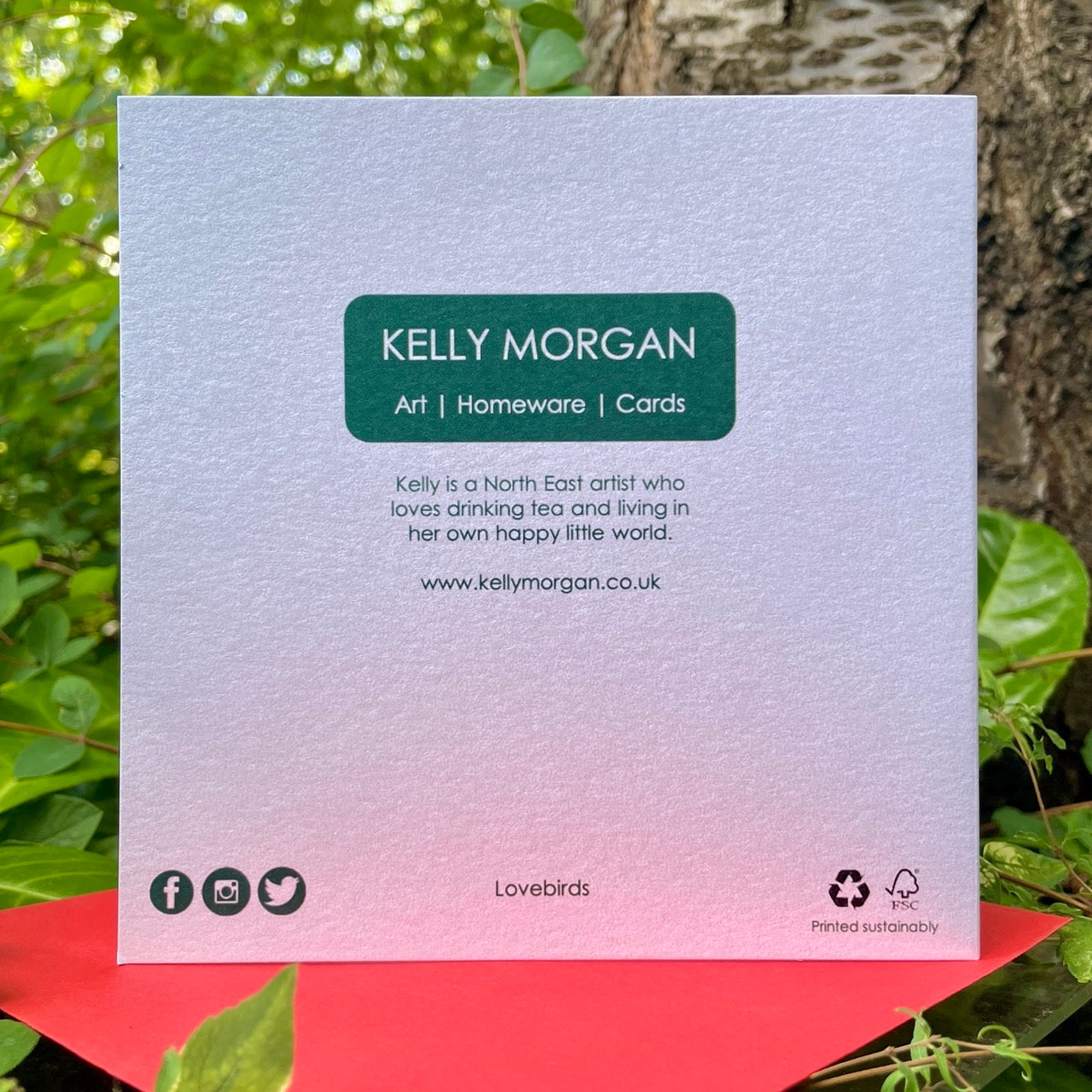The design on this card 'Lovebirds' is taken from Kelly Morgan's original artwork, and it's blank inside for your own message.