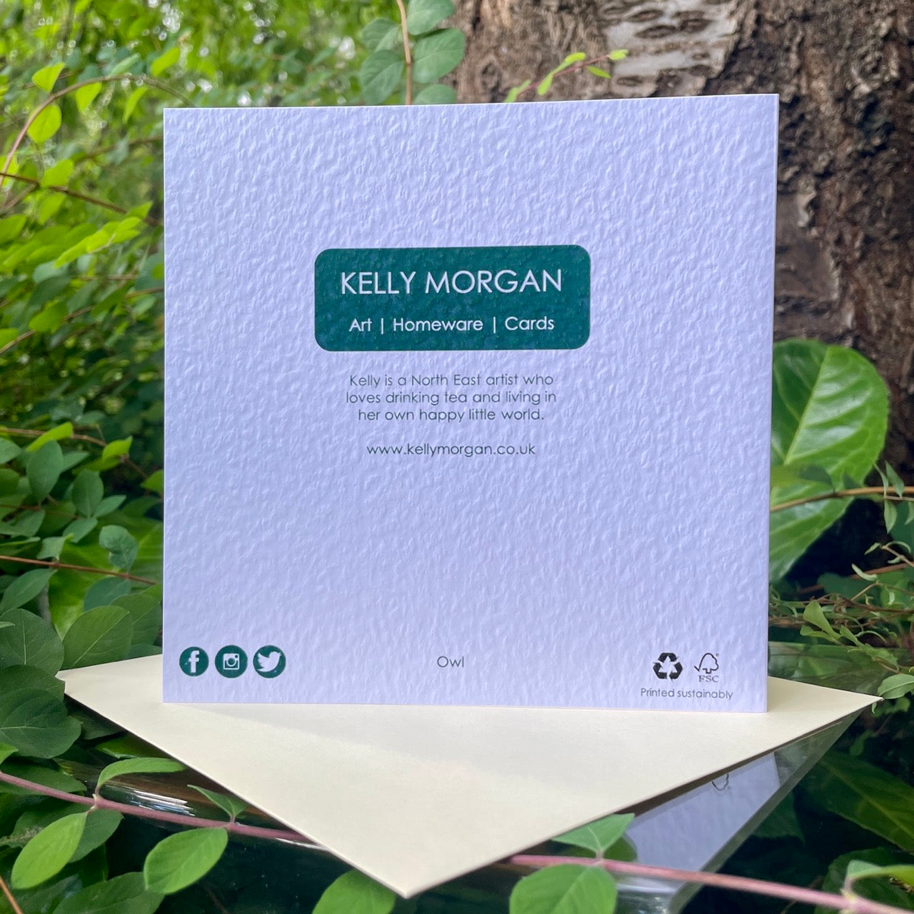 The design on this card 'Owl' is taken from Kelly Morgan's original artwork, and it's blank inside for your own message.