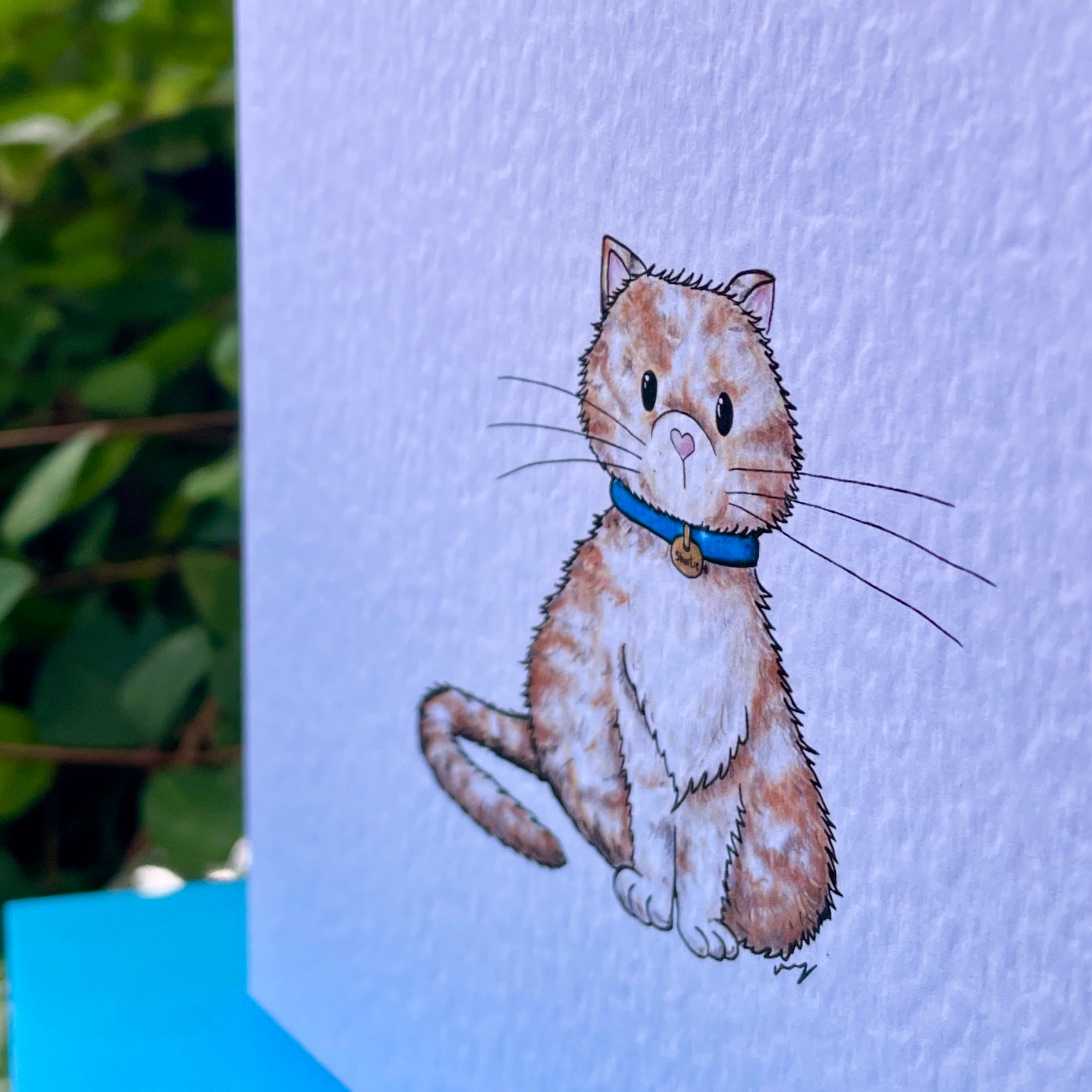 The design on this card 'Shortie the cat' is taken from Kelly Morgan's original artwork, and it's blank inside for your own message. These cards have a beautiful textured surface for a subtle, yet eye-catching finish and come with a matching coloured envelope.