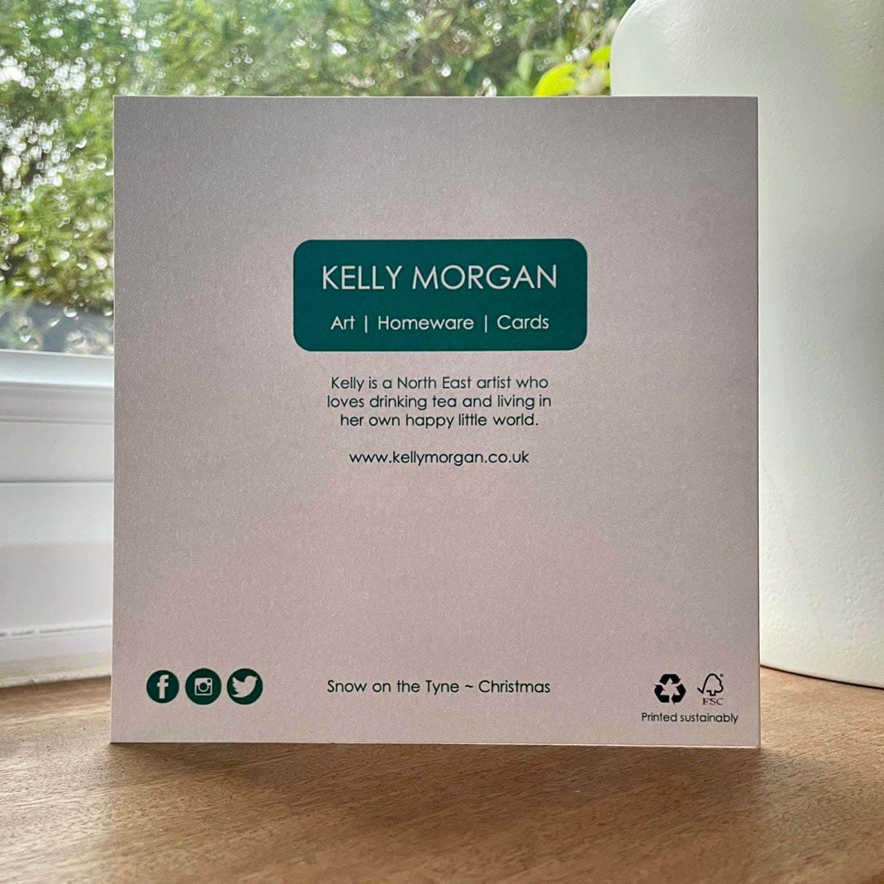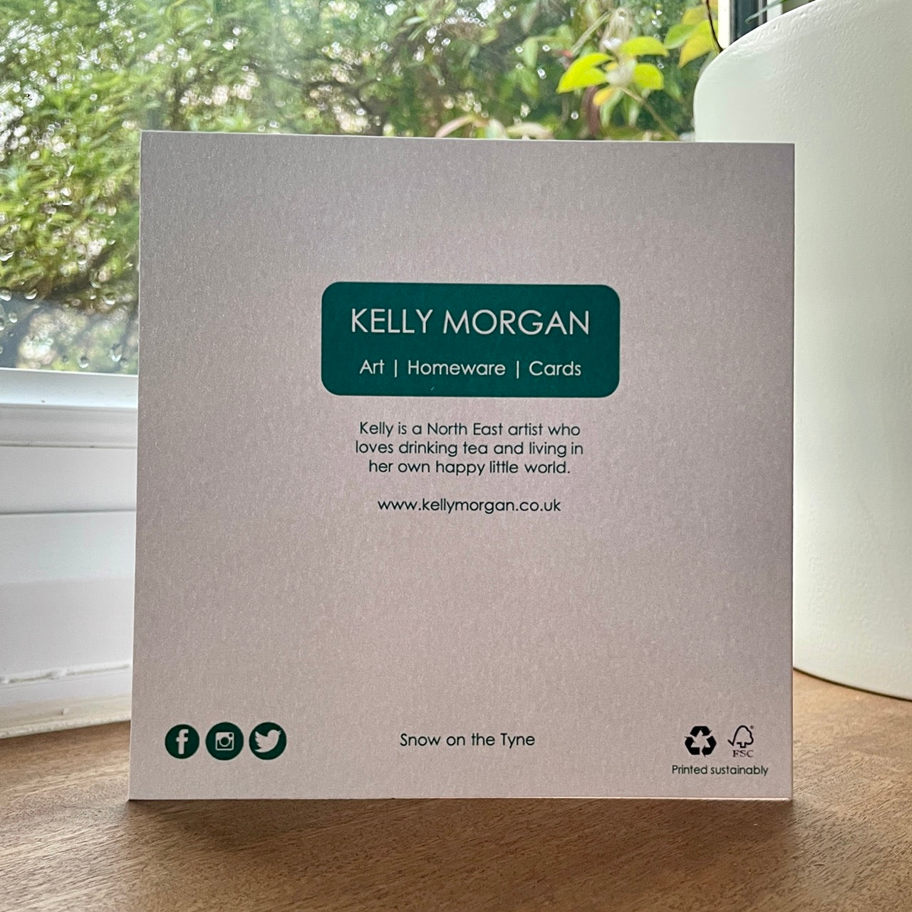 The design on this card 'Snow on the Tyne' is taken from artist Kelly Morgan's original artwork, and it's blank inside for your own message.