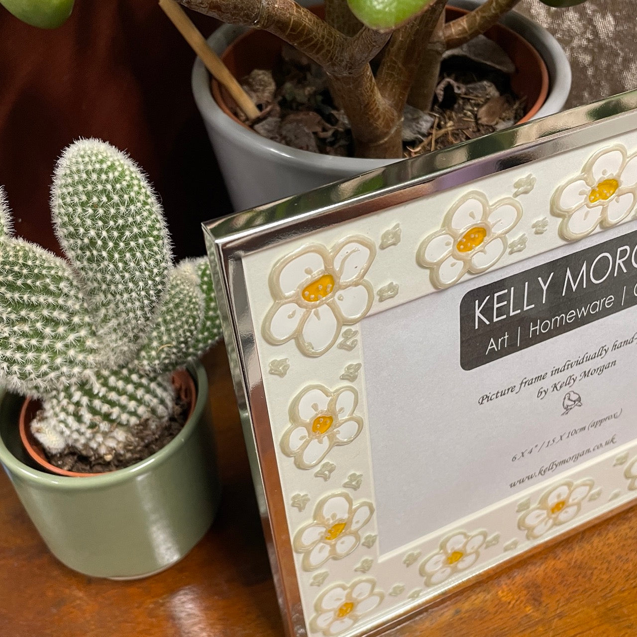 Kelly Morgan individually hand paints each of these silver-plated landscape frames with her Daisy design.