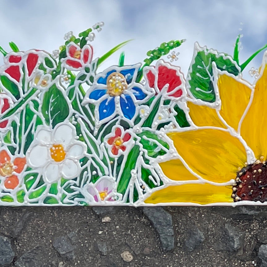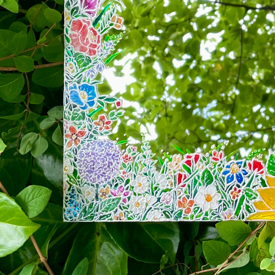 Kelly Morgan individually hand paints her intricate Flower power design onto these square mirrors, to frame your reflection beautifully! This design feature vibrant colourful flowers; sunflowers, poppies and daisies