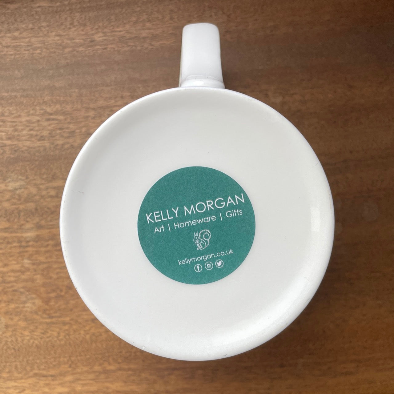These generously sized bone china mugs have a gorgeous glossy finish; Kelly works with a local print company to produce them. The biggest decision you'll have to make is which design to go for!