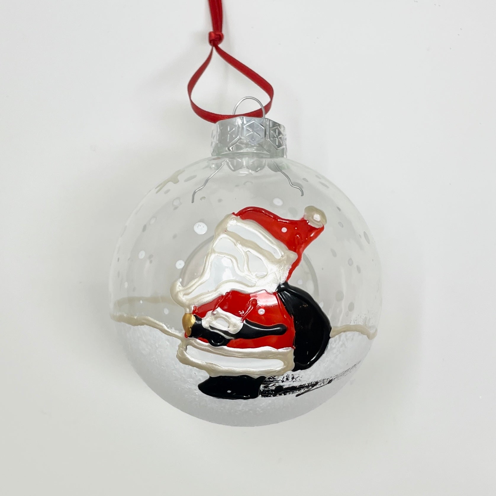 Kelly Morgan individually hand-paints her Santa design onto each of these glass baubles - so every single one is unique. Your bauble will be strung with ribbon when you buy it, so all you need to do is find the perfect place to hang it.