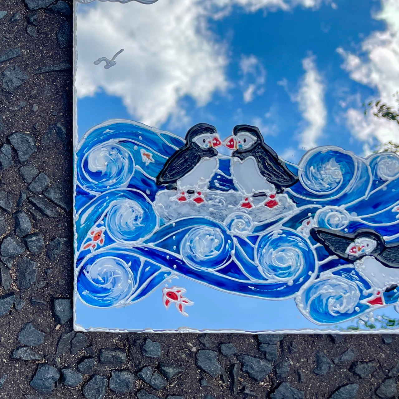 Artist Kelly Morgan individually hand paints her Seaside puffins design onto these square mirrors, to frame your reflection beautifully!
