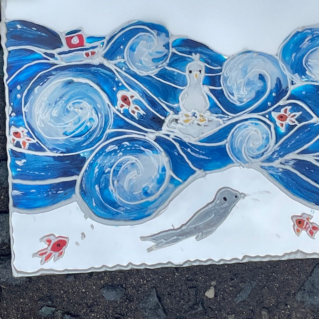 Artist Kelly Morgan individually hand paints her Seaside ~ Seagulls and Seals design onto these square mirrors, to frame your reflection beautifully!
