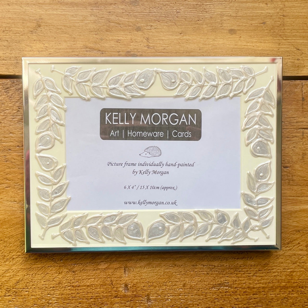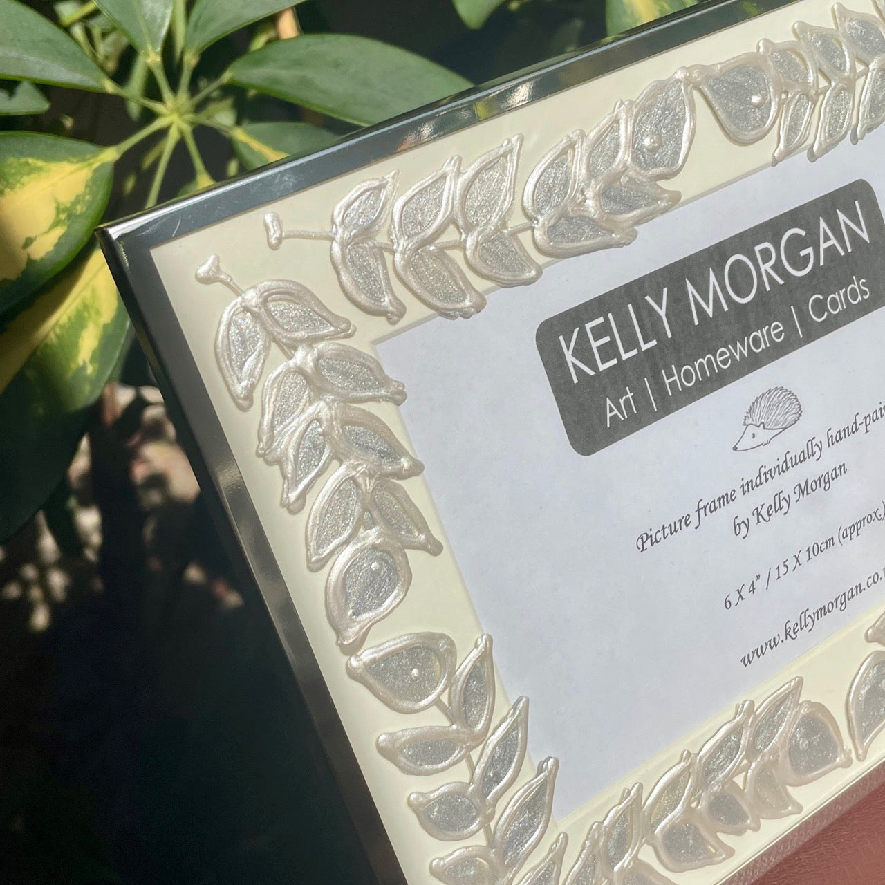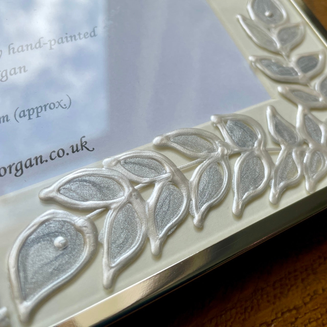 Kelly Morgan individually hand paints each of these silver-plated landscape frames with her Silver Leaves design.