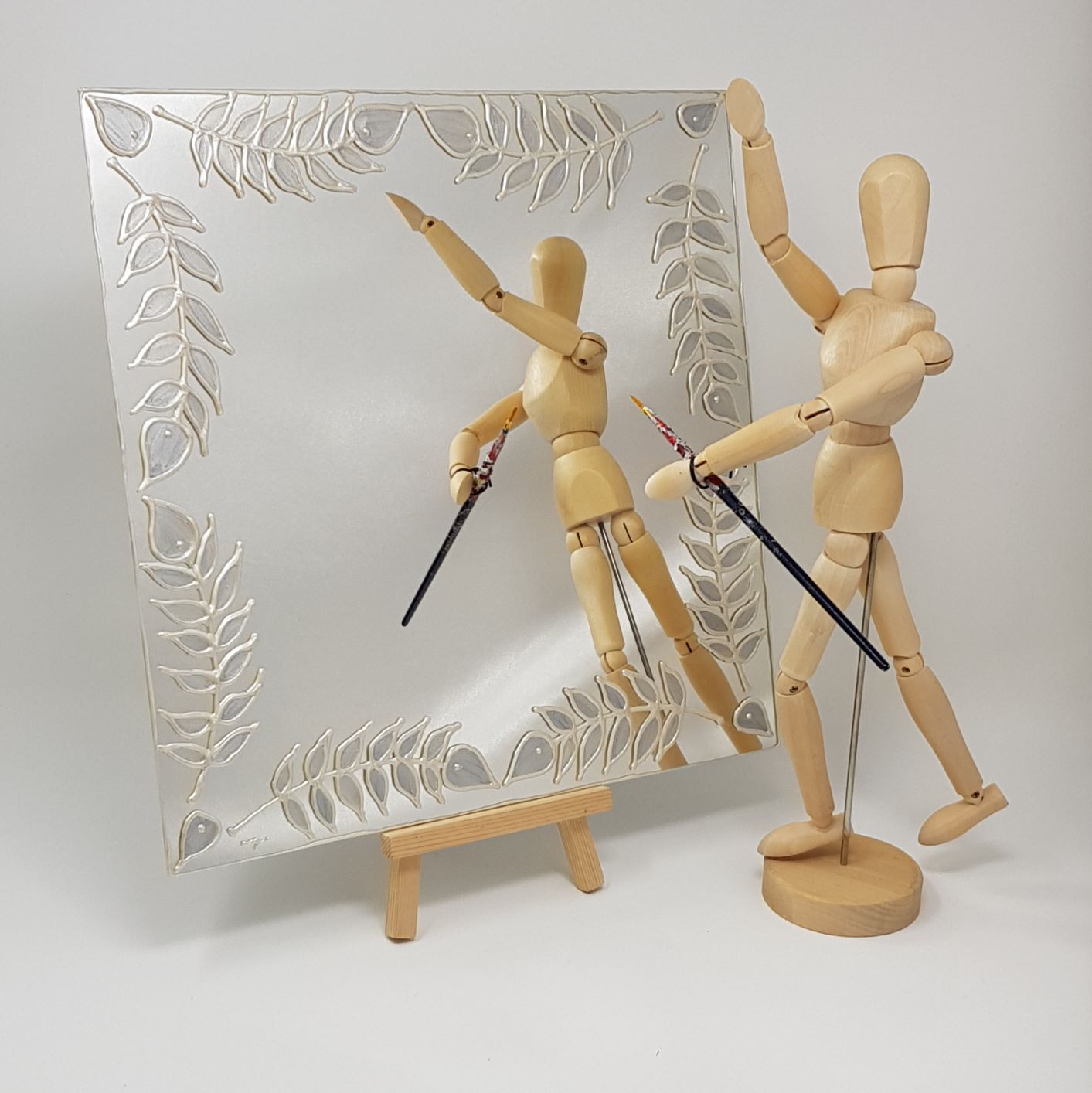 Kelly Morgan individually hand paints her Silver Leaves design onto these square mirrors, to frame your reflection beautifully!