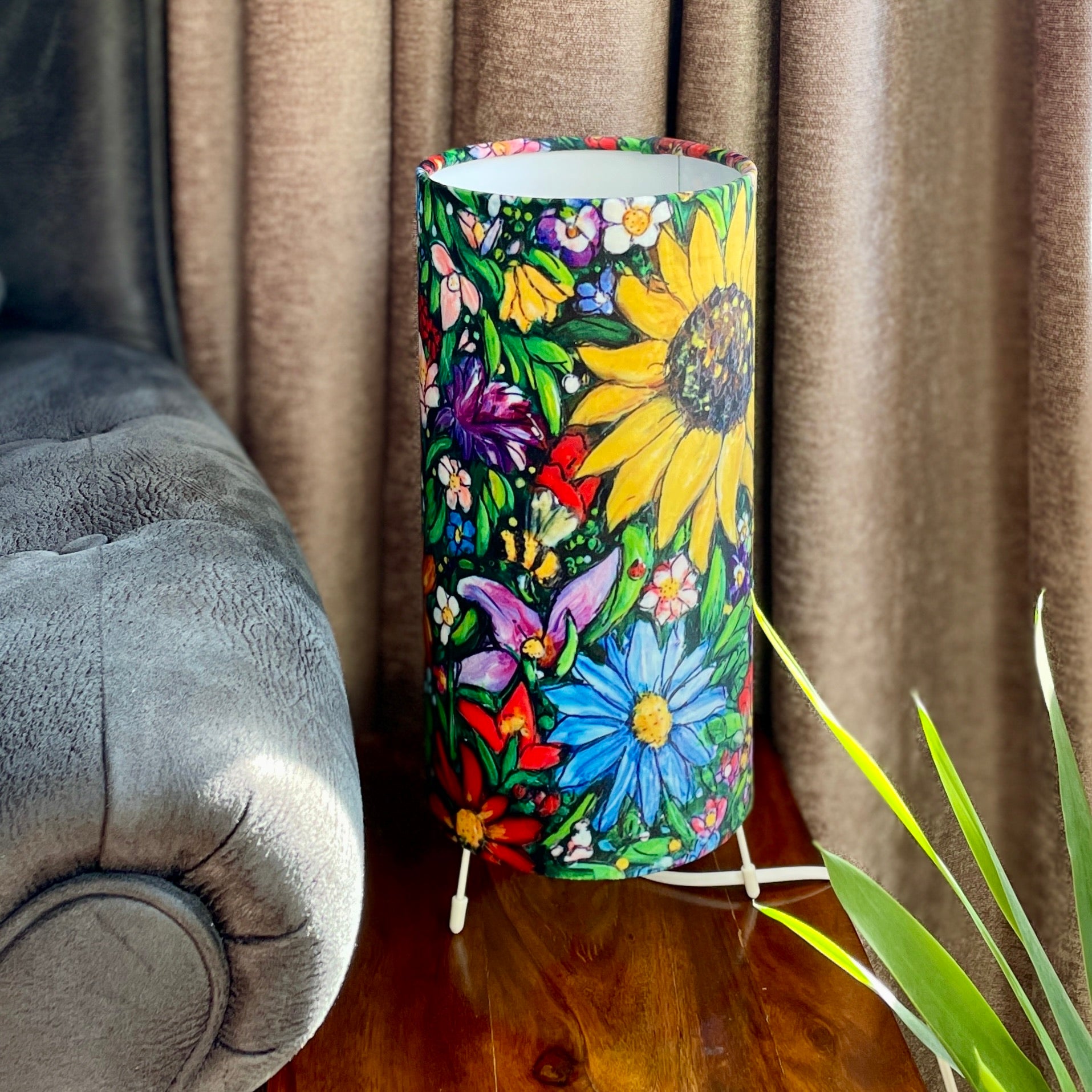 Always loving the opportunity of collaborating with other artists, Kelly really enjoyed working with Gail @Lotties Hoard to create a range of one of a kind lamps & lampshades. Kelly Morgans distinctive 'Summertime~Sunflower ' design was printed onto 100% cotton in the UK & then Gail masterfully turned it into this stunning table lamp.