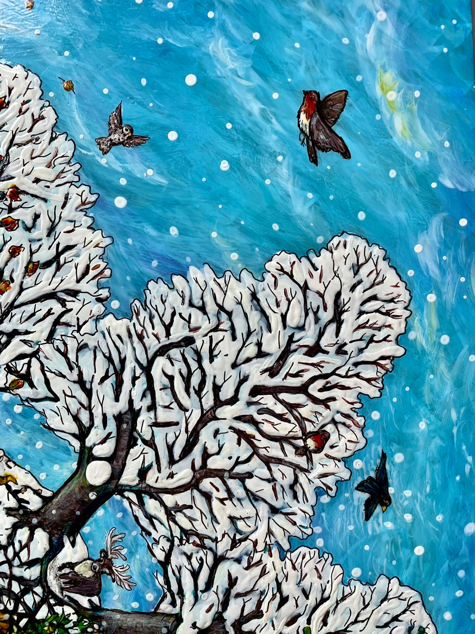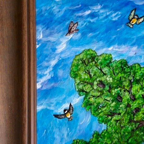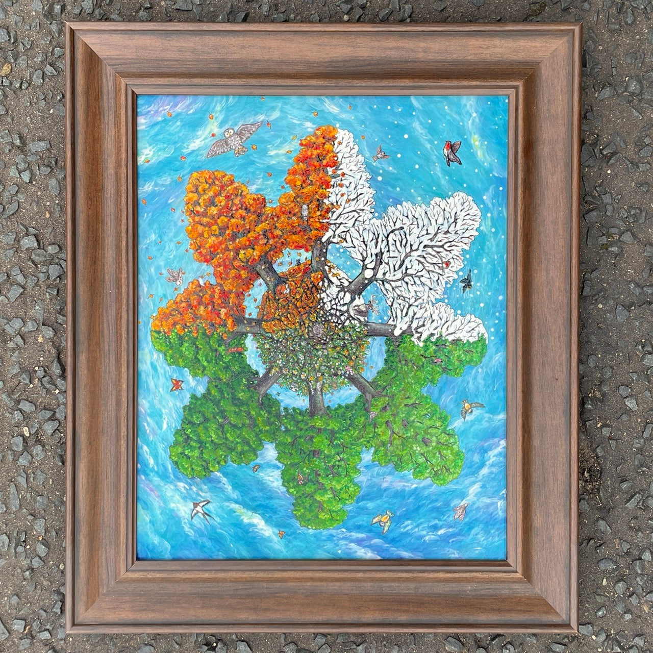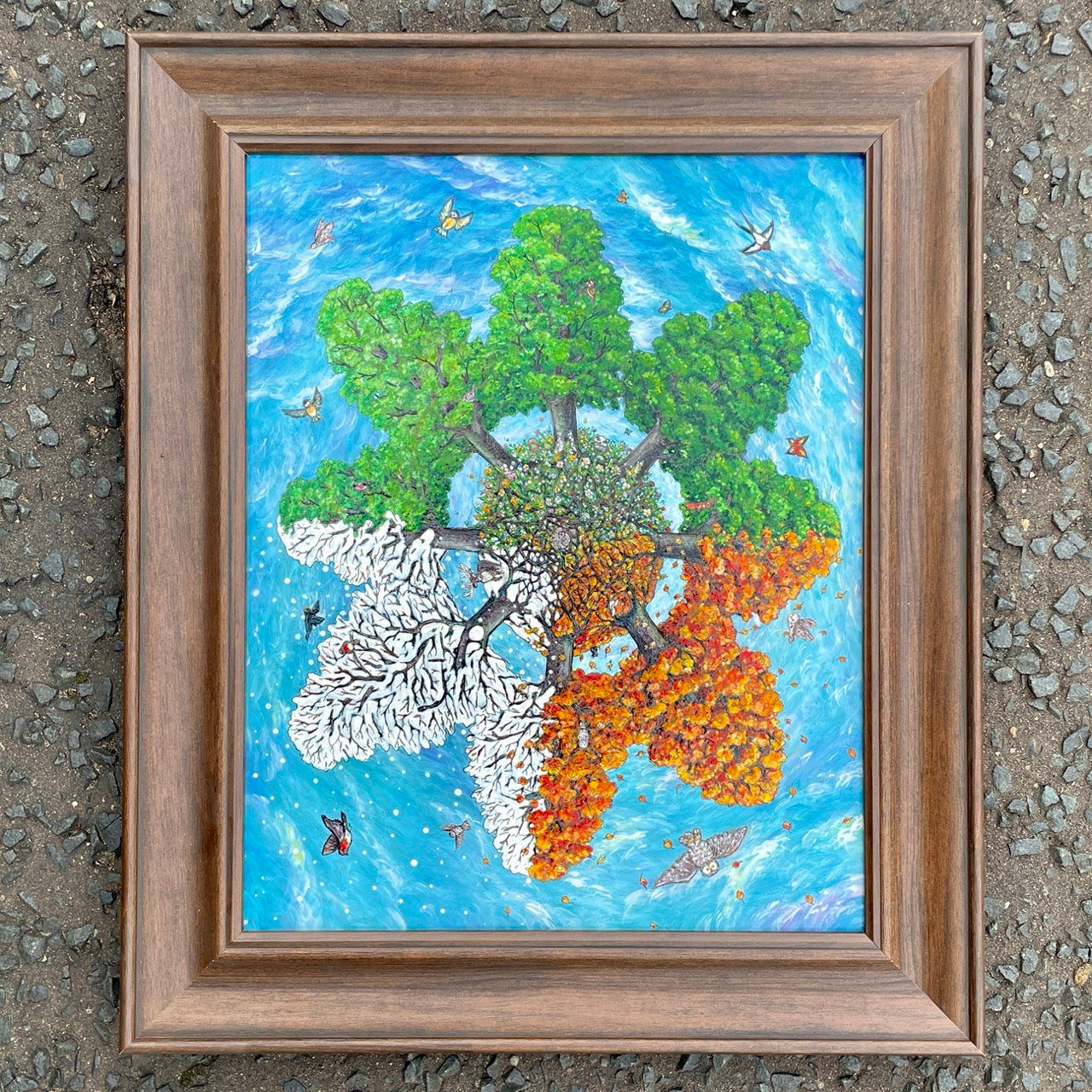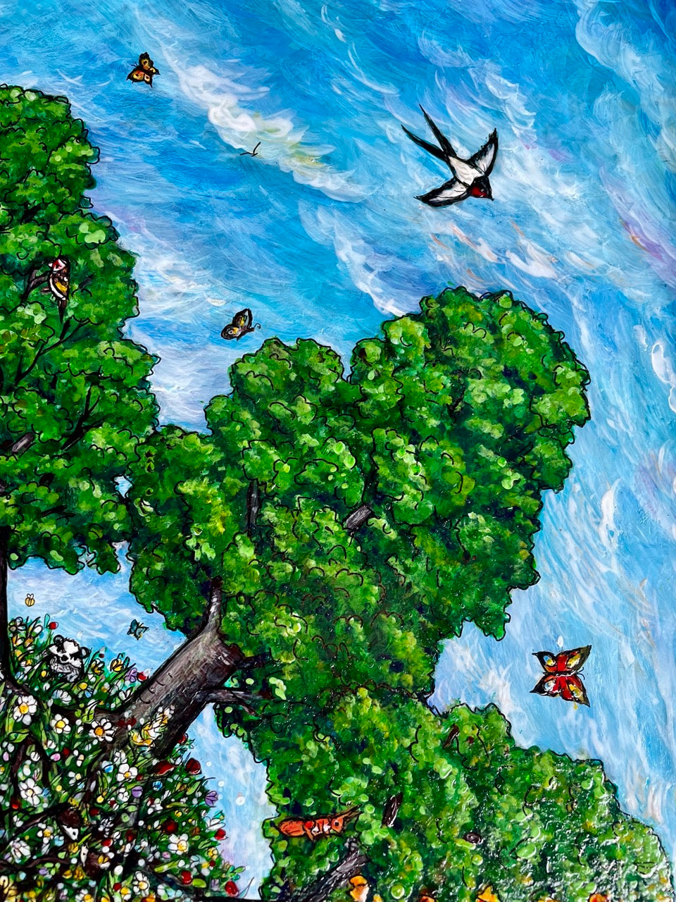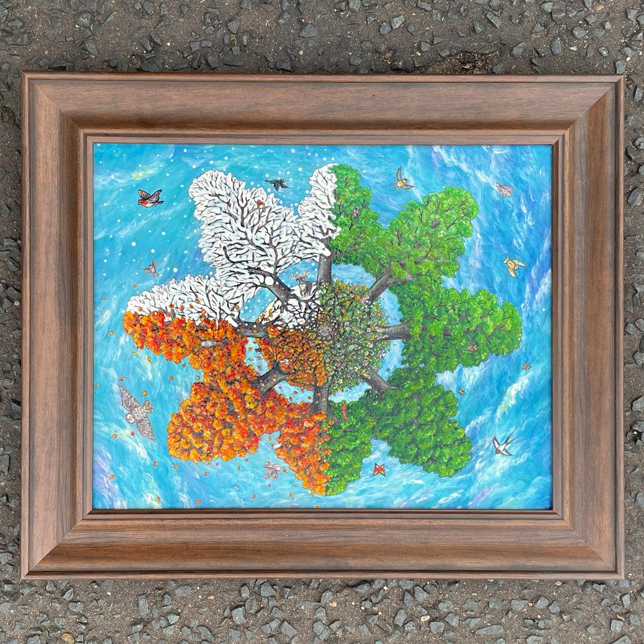 Artist Kelly Morgan continues her passion for celebrating the changing seasons through the whimsical charm of 'Time Flies, Seasons Change' - an original art piece capturing the essence of time, seasons, and the beauty of nature through a unique and quirky depiction of trees.