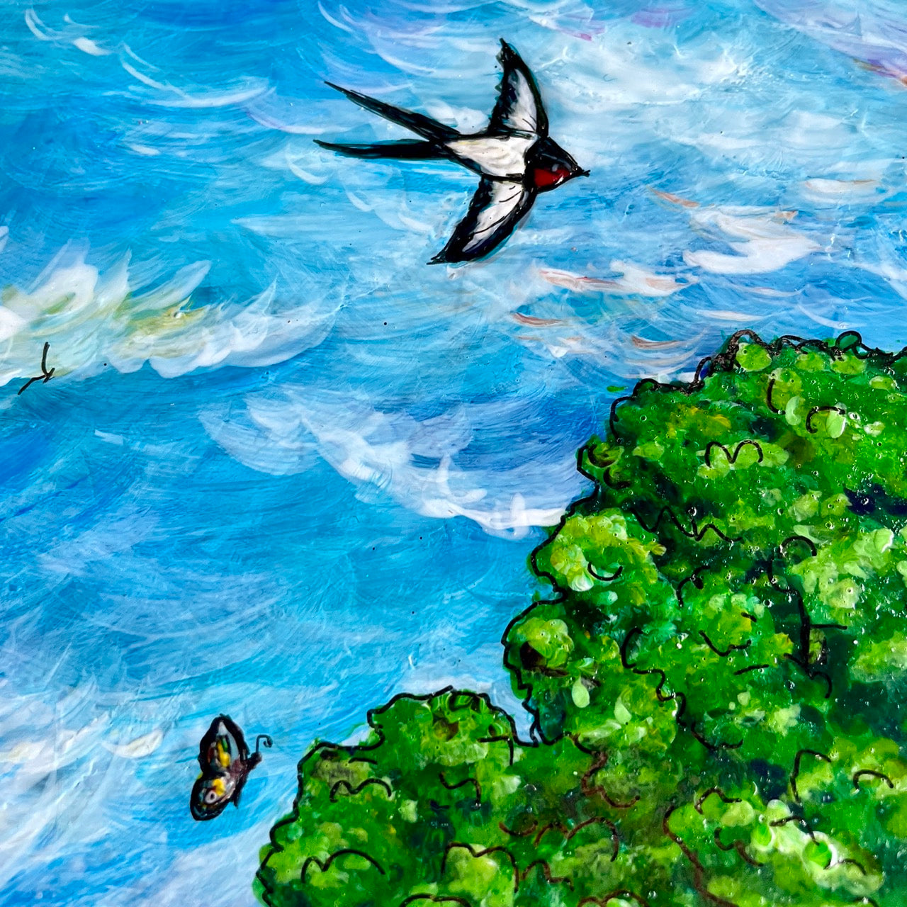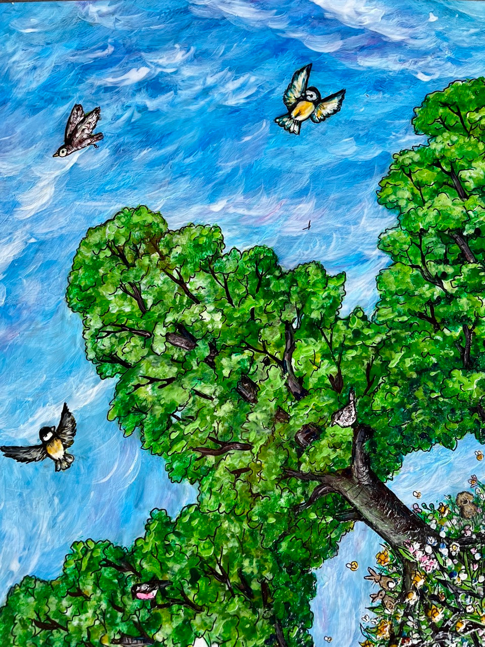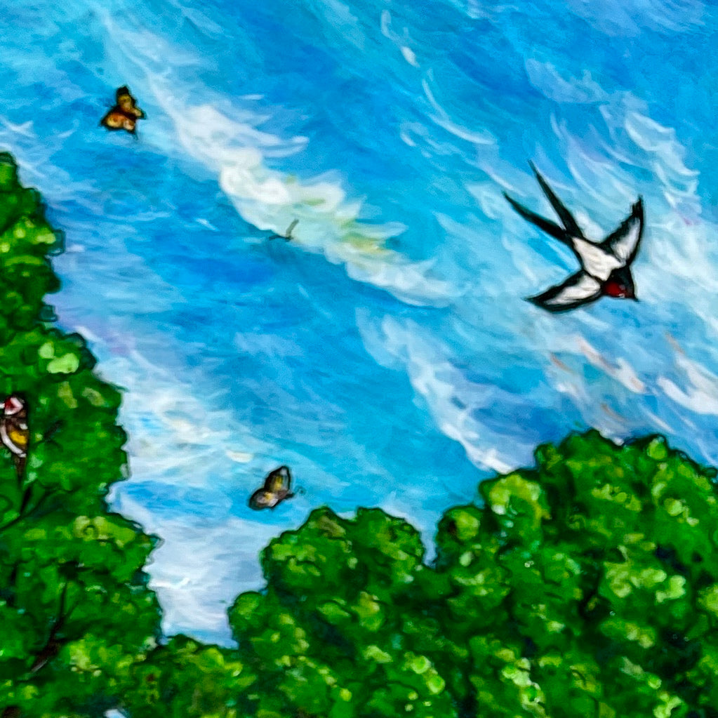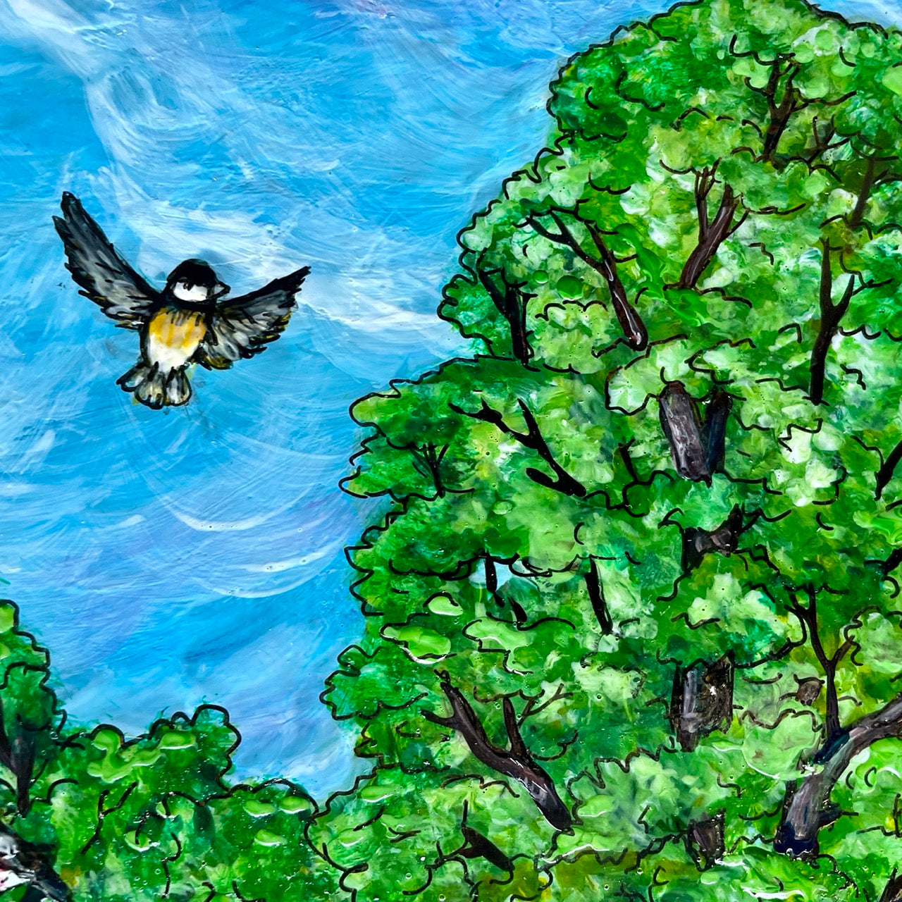 Artist Kelly Morgan continues her passion for celebrating the changing seasons through the whimsical charm of 'Time Flies, Seasons Change' - an original art piece capturing the essence of time, seasons, and the beauty of nature through a unique and quirky depiction of trees.