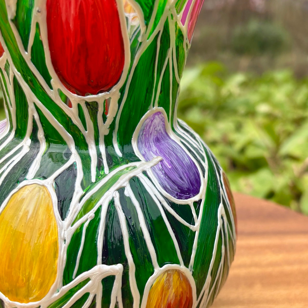This hand-painted glass vase is a truly one-of-a-kind piece from my Tulips collection, there will never be another, making yours entirely unique.