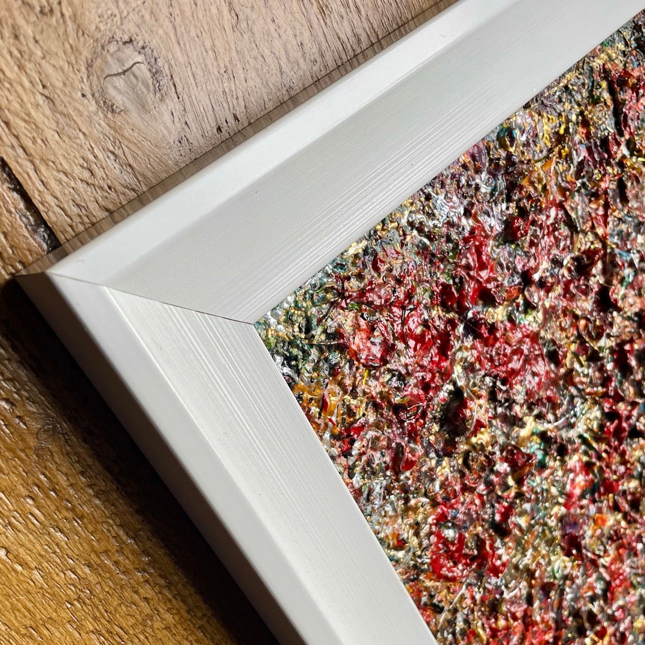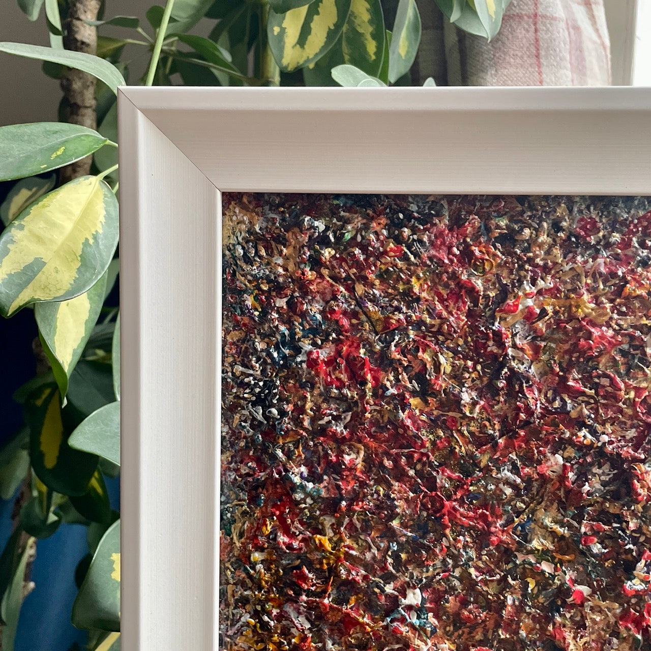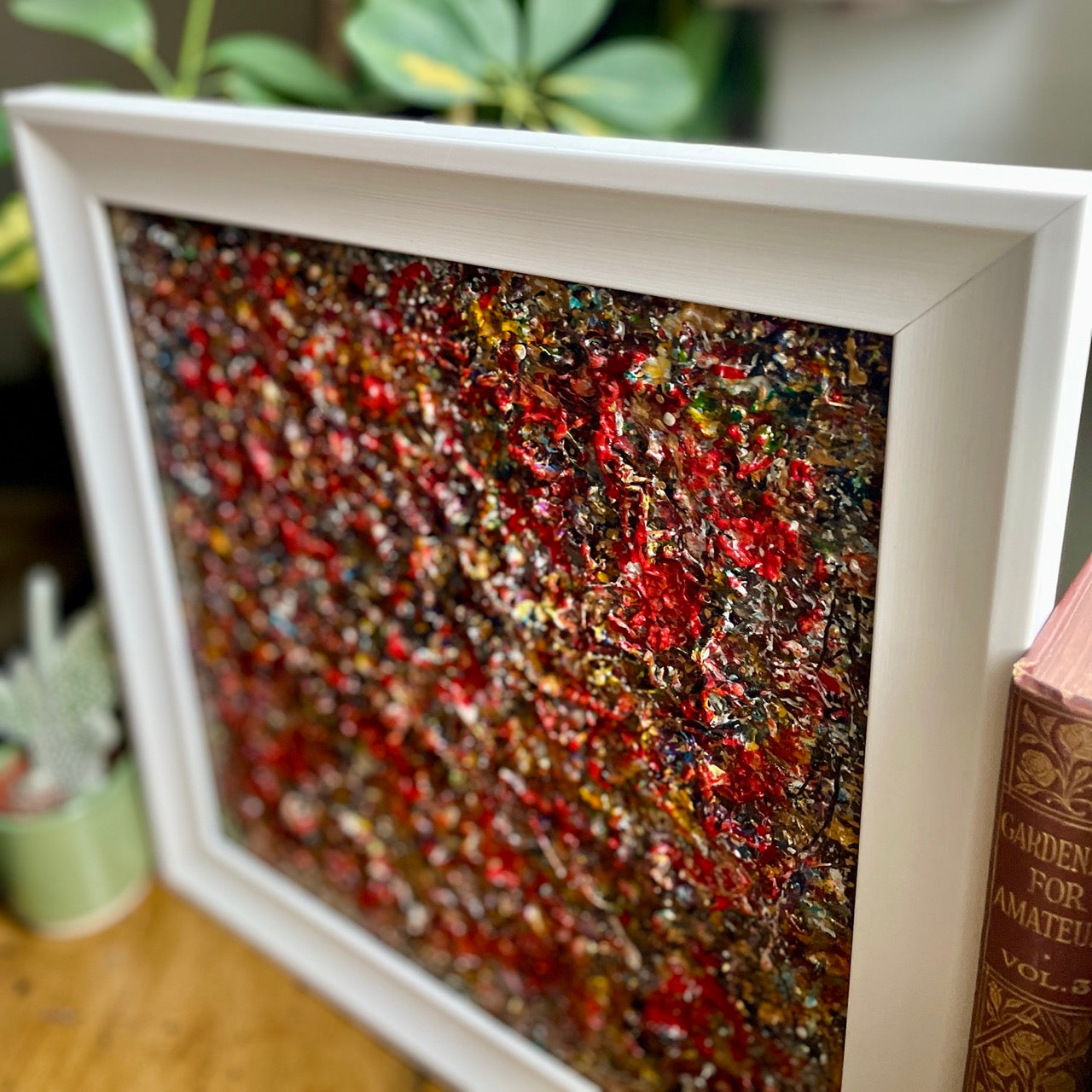 Untitled 24 or 'Accidentally on Purpose' as artist Kelly Morgan calls these pieces. They started by chance, Kelly noticed the beautiful colour & texture left on her desk & apron after painting, decided to capture it, so she started placing glass on her desk.