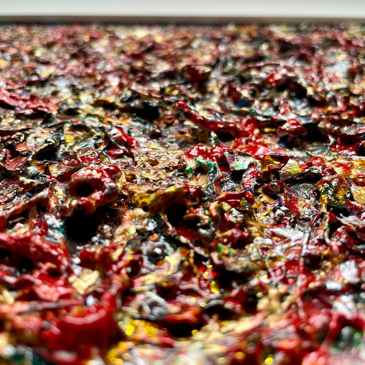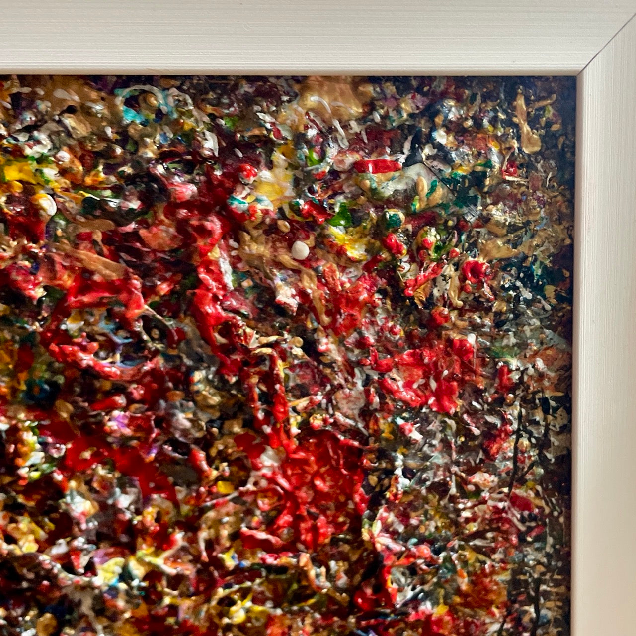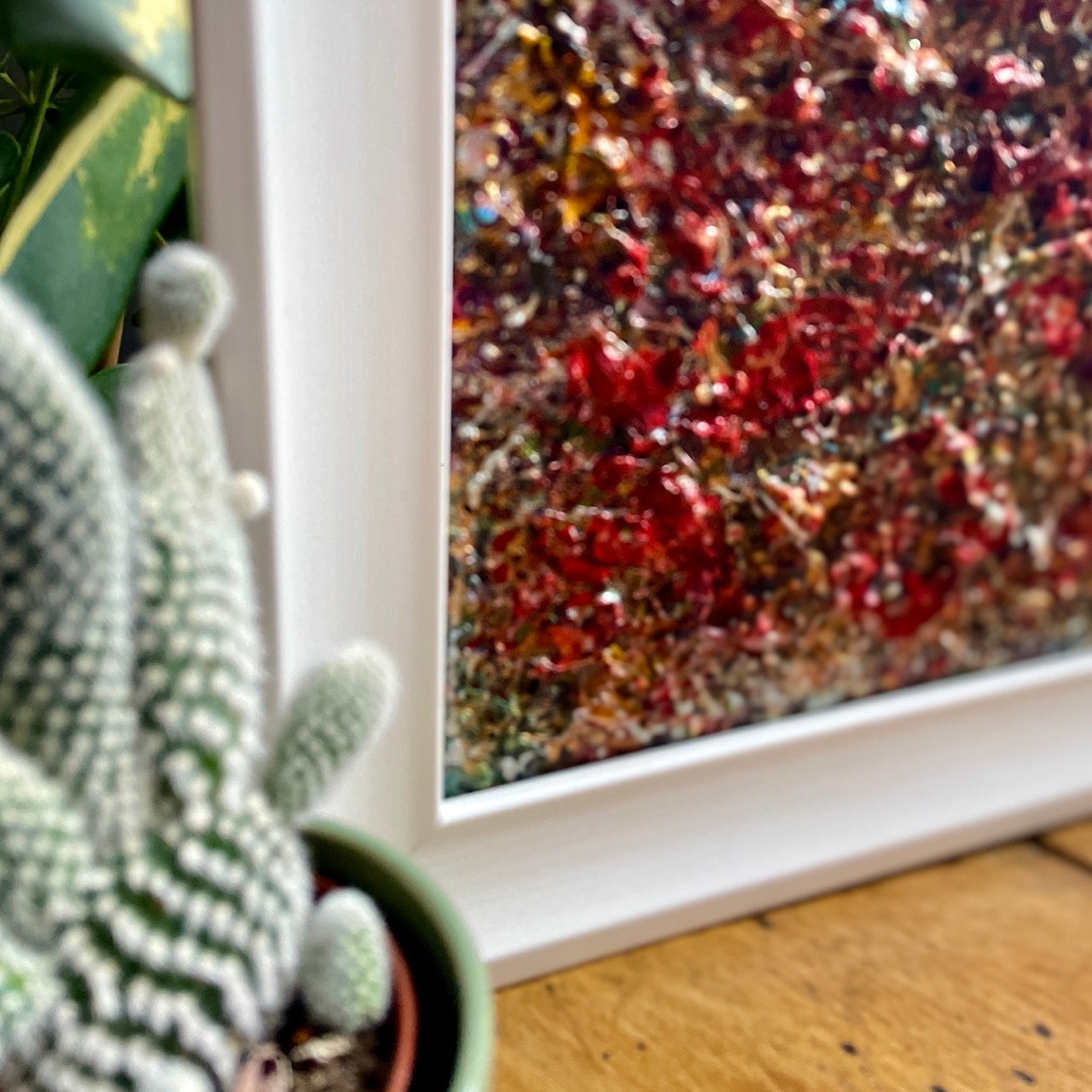 Untitled 24 or 'Accidentally on Purpose' as artist Kelly Morgan calls these pieces. They started by chance, Kelly noticed the beautiful colour & texture left on her desk & apron after painting, decided to capture it, so she started placing glass on her desk.