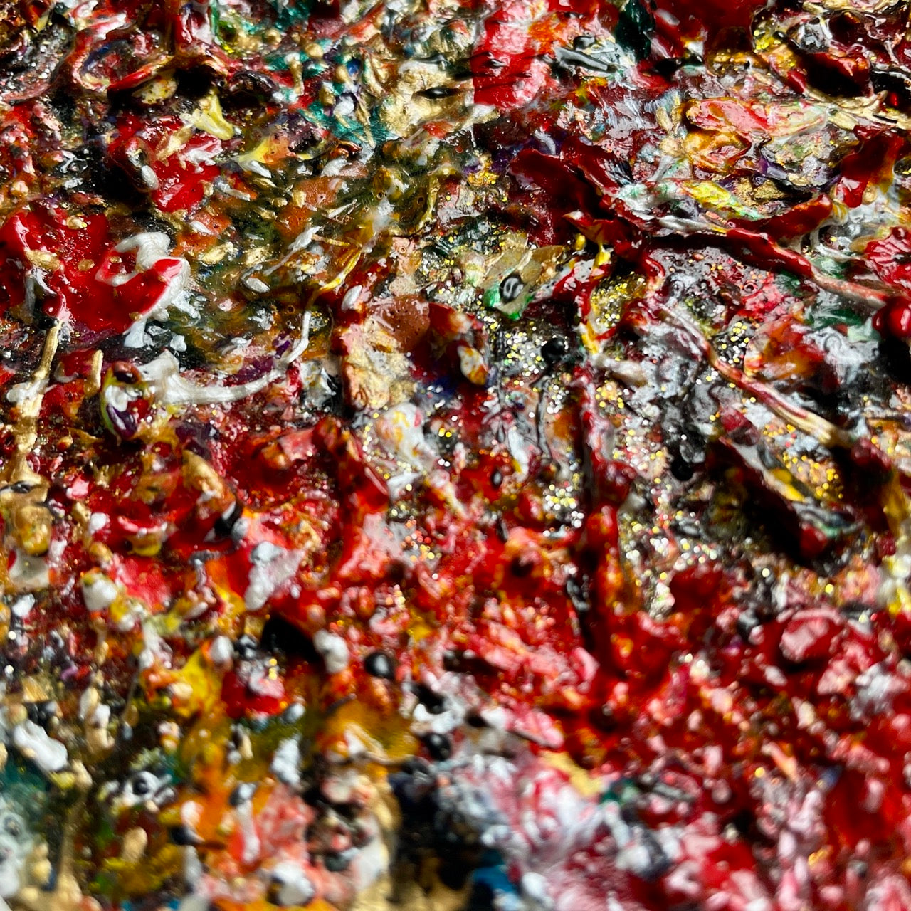 They evolve simply by Kelly being her creative messy self, allowing the art to grow naturally. She loves her untitled works, as they represent where she's been and how she's grown over the years. Each of them builds slowly on the desk in Kelly studio until she feels they're complete-this usually takes years!