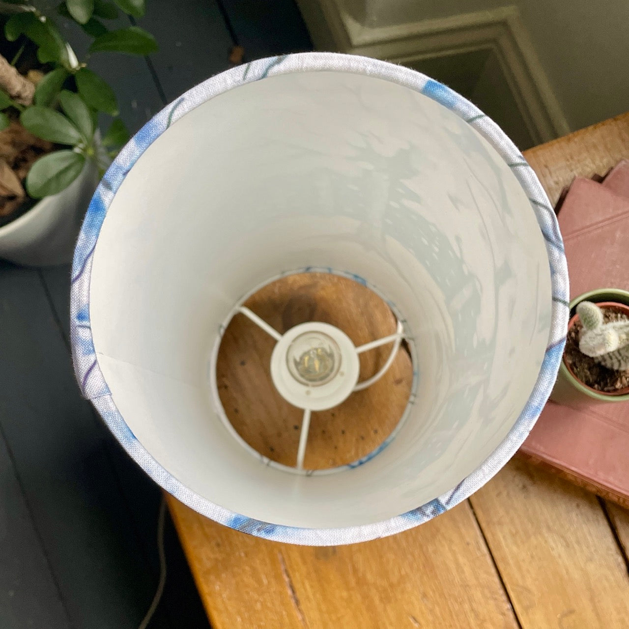 Kelly always likes the opportunity of collaborating with other artists & loved working with Gail @Lotties Hoard to create a range of one of a kind lamps & lampshades. Kelly Morgans distinctive 'Wintertime' design was printed onto 100% cotton in the UK & then Gail masterfully turned it into this stunning table lamp.